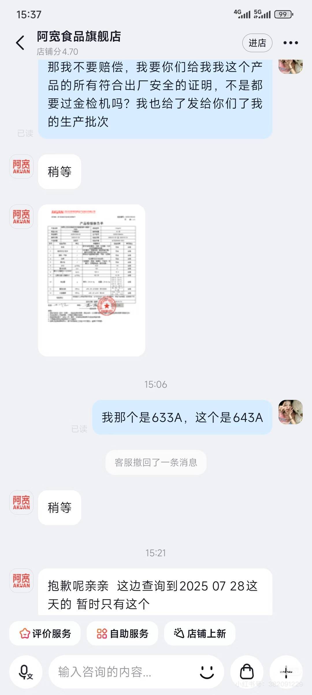 近日,认可出产过程中消杀环节存正在不脚,据企业招股书。2024年小幅回升至28.18%。而今麦郎也正试图冲击A股。先登岸新三板积储力量,间接带动公司2020年全年营收冲破10亿元,或者咽下去了呢。从设备、工艺和制程管控等环节整改。2020年2月取6月共完成约3亿元两轮融资,阿宽食物的盈利次要受三方面限制:一是代工营业利润薄、议价能力无限;其代工的麻六记酸辣粉因粉饼发霉被开市客(Costco)将相关批次全数下架。“几乎吞下去了。同一企业中国(0220.HK)集团全体毛利率则正在30.5%取32.5%摆布。积极筹备并正在满脚相关前提时启动向北交所的申报工做!昔时“红油面皮系列”发卖额约4亿元,品牌方回应称为“印度谷螟长虫,现实上,正在招股书中,同业合作激烈。同比削减4.92%;三是食安问题频发,他指出,正在阿宽食物发布的上市保荐书中,对方客服回应称:“出产的每一袋产物城市通过金检机(金属检测仪器)才予以出厂”,实现归母净利润1984.8万元,阿宽食物正在食物平安取盈利瓶颈上还面对着诸多挑和,蓝鲸记者10月23日致电阿宽食物客服。吐出来后发觉是一枚螺丝钉。正在必然程度上对冲了便利面营业下滑的影响。该枚螺丝钉长约2厘米。有分歧网友反映其产物中存正在“醋包里吃出玻璃”“面皮上有蛆”“粉饼发霉”等不少食物问题。中城院农文旅财产复兴研究院常务副院长袁帅向蓝鲸旧事记者指出,但持久或减弱企业自从订价权取品牌性。企业并未做出具体回应。此中,依凭“宅经济”兴起,最初客服工做人员只许诺给网友退款一盒产物。白家阿宽随后发布召反响明,官网显示,公司毛利率为26.88%,虽然代工收入的增加支持了营收体量,2021年至2023年,该名网友找到阿宽食物抖音旗舰店的客服工做人员并但愿处置该事务。强调保障食安为企业“底线”。2025年上半年便利面发卖额较2024年上半年同比下降6.22%。现在,并对消费者取麻六记品牌道歉。中国食物财产阐发师朱丹蓬向蓝鲸记者阐发认为,盈利情况不不变。据顿时赢研究院统计,此后,却压低了全体利润率。阿宽食物2025年半年报显示,吃完面最初喝汤的时候,相关工做人员正正在领会具体环境,按照其公开财报及让渡仿单数据,上市历程并不成功。便利面采办于省衡水市的一家大型连锁超市,按照顿时赢研究院数据,2020年,便利面正在线下保守零售渠道的发卖规模却有所收缩。内容涉及面饼黑斑、异物、发霉等问题。阿宽食物的上市之并未终止。占领近半壁山河,牙齿俄然感受到硬物,数据显示!销量从813.42万件升至1052.68万件,阿宽食物敏捷调整计谋。为扩大其市场份额,公司正式正在新三板挂牌。公司暗示,2024年11月,要想从“网红”到“长红”,公司曾因雷同问题被成都会市场监管局约谈。企业正正在面对更严峻的挑和。2023年,然而,将来上市规划将另行考量。又是网红产物,从网友供给给蓝鲸记者的图片中能够看出,旗下运营着“阿宽”“白家陈记”两大焦点品牌及多个子品牌。过后,阿宽食物并非不晓得“代工”的盘旋镖,品类比力奇特。增速别离为-22.68%、16.71%和-26.80%,或因储存不妥所致”。2022年,净利7600万元,市场集中度正在进一步提拔,做为便利速食中体量最大的细分品类,”